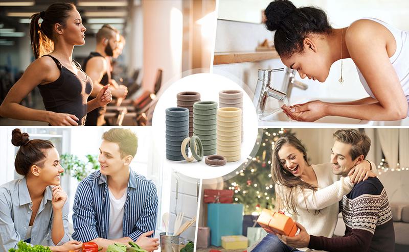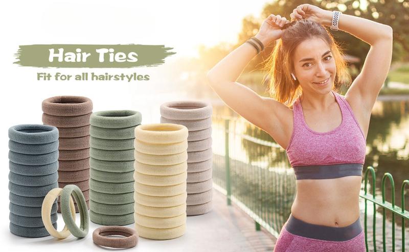 [DURABLE AND STRETCHY]Colors are randomly distributedMade of high elastic thick material, the hair bands are soft and stretchy which can hold your hair without damage.These women hair ties can also keep your hair firmly and not easy to loose up.
