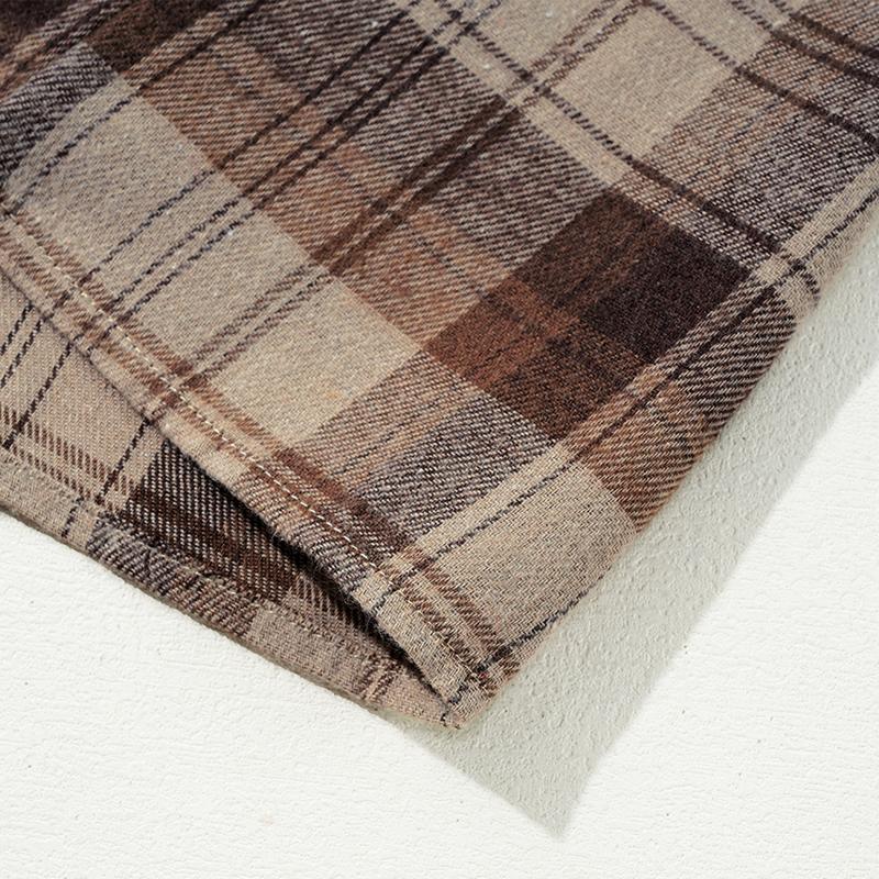 - Unique plaid patchwork hem for a trendy look.
